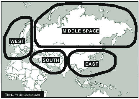 Fig. 1: Brzezinski’s map of the Eurasian Chessboard